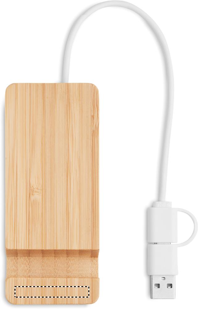 4 Ports USB-C/A-Hub im Gehäuse aus Bambus. Ausgang: 2 x Typ-A und 2 x Typ-C. Eingang: 2-in-1 Typ-C & Typ-A. Kabellänge: 20 cm.