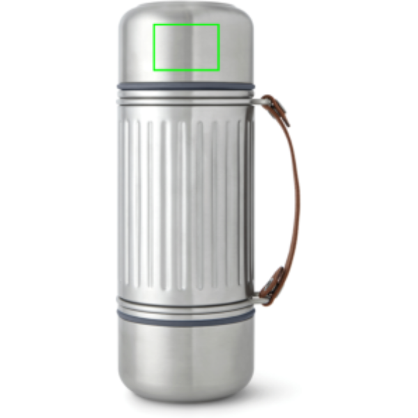 Diese 1-Liter-Vakuum-Isolierflasche aus Edelstahl ist für jedes Abenteuer geeignet – egal, ob Sie auf Wanderwegen unterwegs sind, am Strand entspannen oder die Pisten unsicher machen. Dank ihrer verstärkten Struktur und ihrem robusten Design hält sie Getränke bis zu 24 Stunden lang heiß oder eiskalt. Sie ist absolut auslaufsicher und verfügt über einen Stahlverschluss mit praktischem Ausgießer sowie zwei doppelwandige Edelstahlbecher. Die breiten Becher bieten zusätzliche Stabilität auf unebenem Boden, während ein dicker Nylonriemen das Tragen und Ausgießen erleichtert. Eine Silikondichtung verhindert das Tropfen, wenn die Becher verstaut sind, und die Flasche ist spülmaschinenfest, sobald der Riemen entfernt wurde. Ein nachträglicher angebrachter Druck hält einer Spülmaschine jedoch nicht Stand.