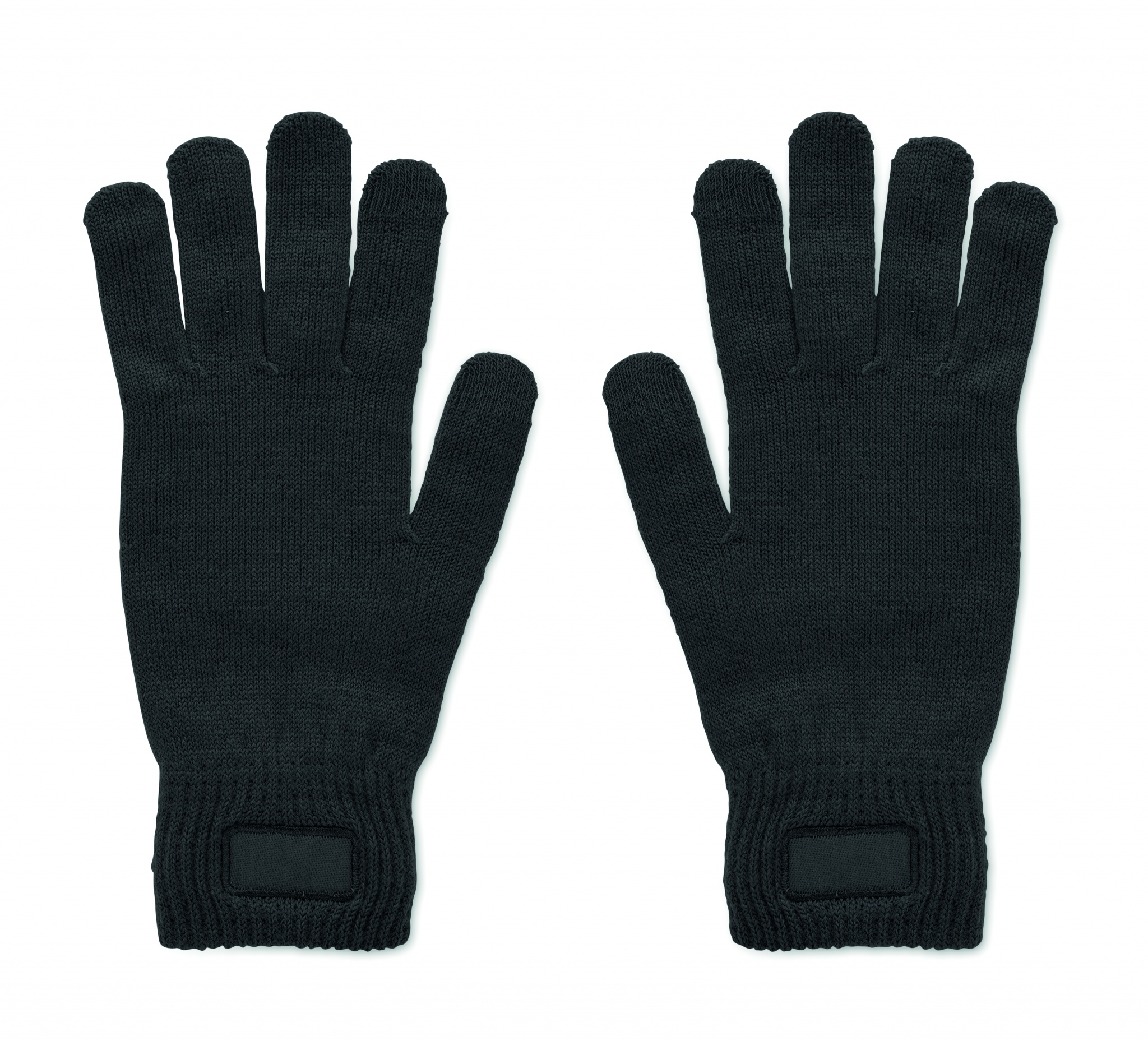 Gestrickte Handschuhe aus weichem, elastischem RPET-Polyester mit Patch.