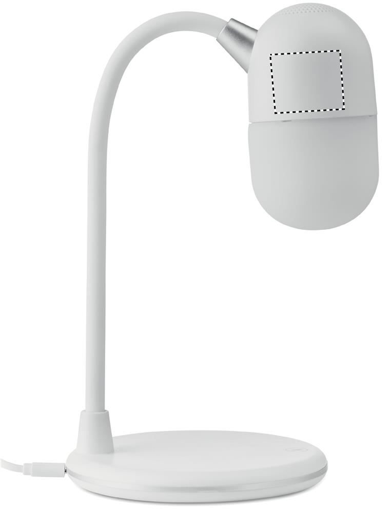 LED Lampe mit induktiver Ladestation und 4.2 wireless-Lautsprecher. 3 Helligkeitsstufen: Tageslicht, Kaltlicht und natürliches Licht. Ausgangsleistung: DC5V/1A (5W). Kompatibel mit den neuesten Android Smartphones, iPhone® 8, 8S und X und höher.