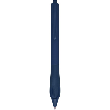 Kugelschreiber aus recyceltem Kunststoff mit gummiertem Schaft und Griff aus TPR. Tintenfarbe: Blau. Schreiblänge: 1000 Meter. Strichstärke: 1,0 mm.