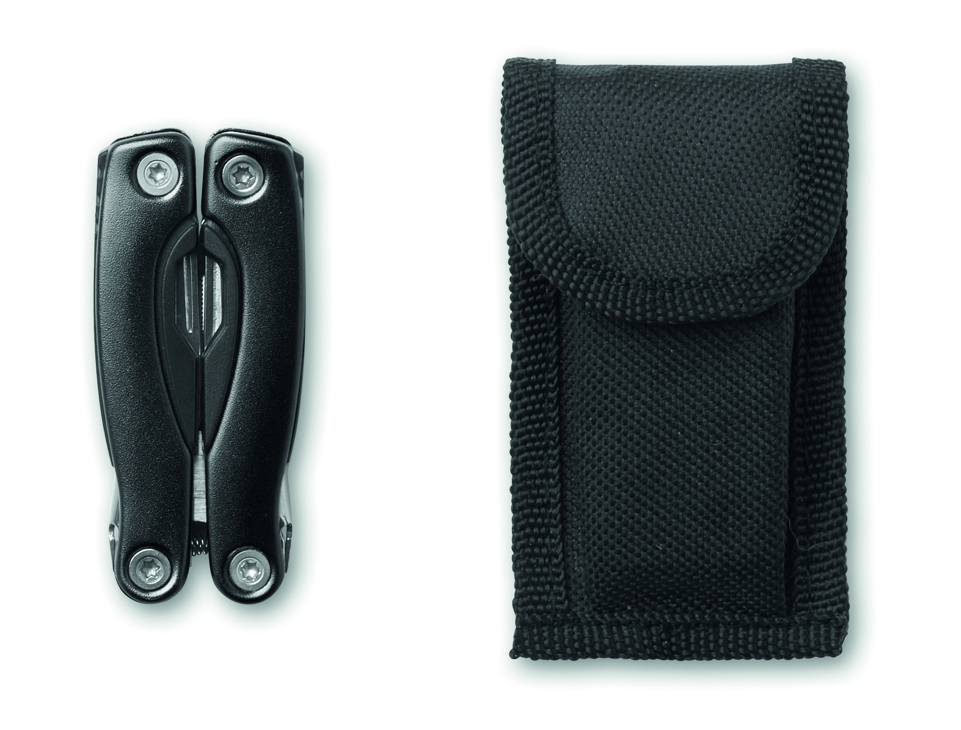 Multifunktionswerkzeug mit Zangen aus Edelstahl. 9 unterschiedliche Funktionen. Inkl. 600D Polyester Etui.