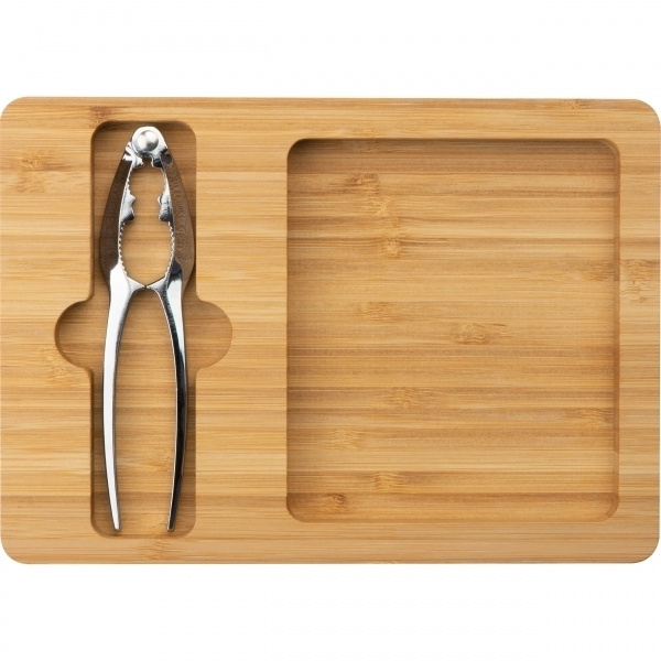 Wunderschöne Bambusschale mit Nussknacker aus Metall. Geben Sie Ihrer Logobotschaft mit diesem Artikel einen besonders geschmackvollen Rahmen. Ihr Logo drucken wir per Lasergravur auf die Bambusschale.