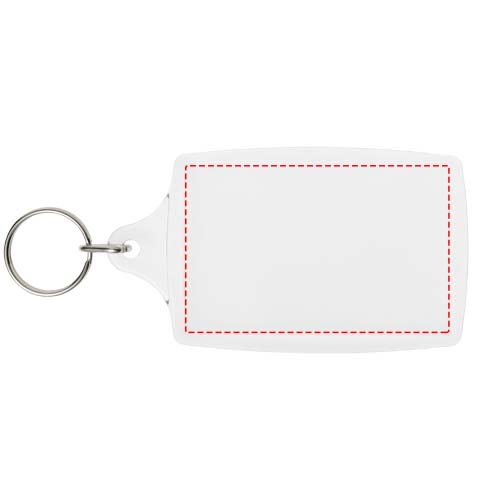 Transparenter L4-Schlüsselanhänger mit metallenem Schlüsselring. Der Metallring bietet ein flaches Profil, das sich ideal für Mailings eignet. Abmessungen der Druckeinlage: 7 cm x 4,5 cm.