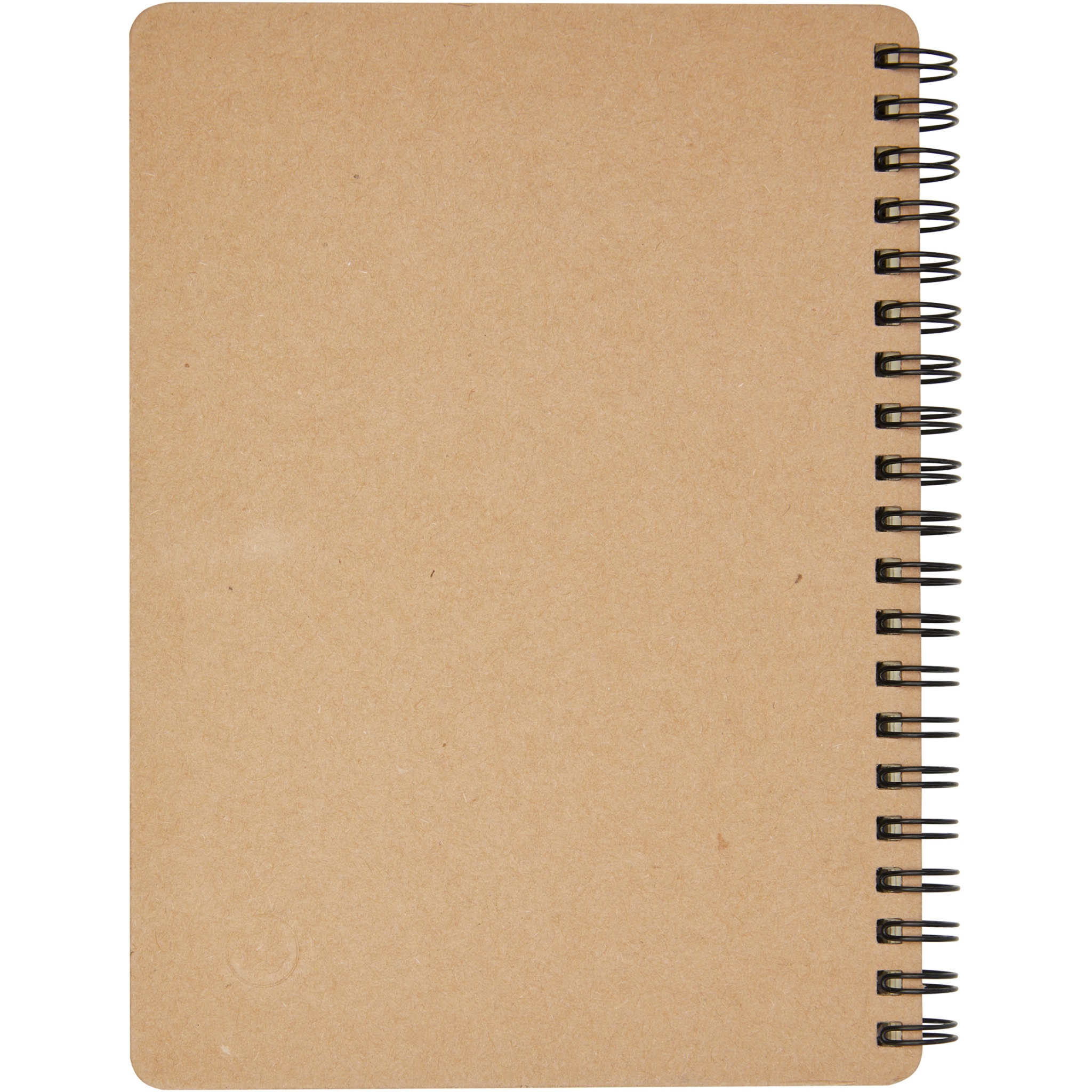 Notizbuch mit Deckel aus Recyclingkarton, 60 Blatt liniertem Recyclingpapier und passendem Stift. Das Notizbuch und der Stift sind zusammen verpackt.