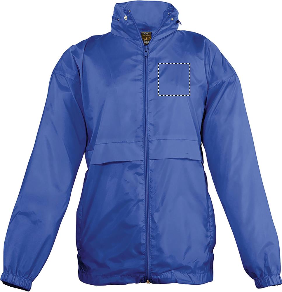 SOL'S SURF Kinder Windbreaker mit Reißverschluss. Einer der günstigsten Windbreaker auf dem Markt. Winddicht und wasserabweisend. Kragen mit Reißverschluss zum Verstauen der Kapuze, Kordelzug am Saum, elastische Bündchen, Belüftungsösen. Zwei Reißverschlusstaschen, die rechte Tasche dient zum Verstauen der gefalteten Windjacke, mit elastischem Gürtel. Material: 210g/m² 100% Nylon 210T. Größen: 5-6 Jahre: 105-116 cm (XL), 7-8 Jahre: 117-128 cm (XXL), 9-11 Jahre: 129-141 cm (3XL), 12-14 Jahre: 142-164 cm (4XL), 15-16 Jahre.: 165-176 cm (5XL)