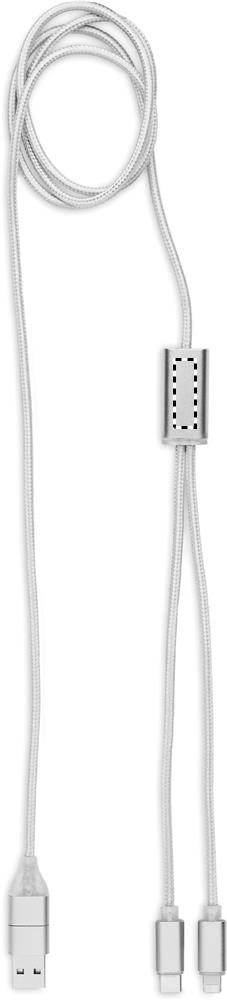 Charging cable in aluminium with input: 2-in-1 type-C & type-A and micro-B (2 in 1 pin), Type C and micro B output. Cable length: 120cm.