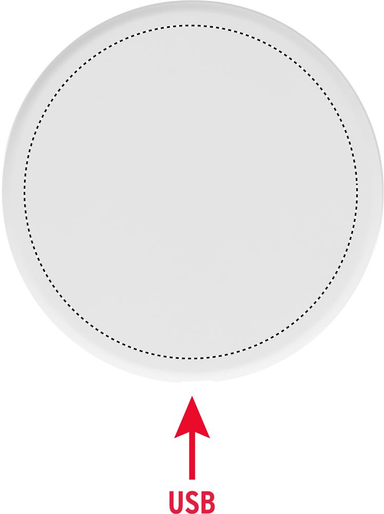Recycled ABS wireless charger. Connect to your computer, place smartphone on device to commence charging. Output: DC 9V/1.1A (10W) for quick charging. Compatible latest androids, iPhone® 8, X and newer.