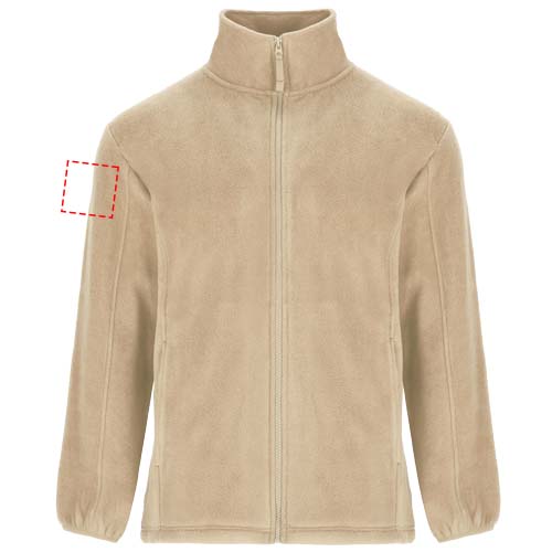 Fleece jacket with high lined collar and matching reinforced covered seams. Injected zip with matching puller made of fabric. Side pockets. Cuffs with elastic trim. Bottom hem with inner side adjusters. Removable label. The model is 185 cm and is wearing size M.