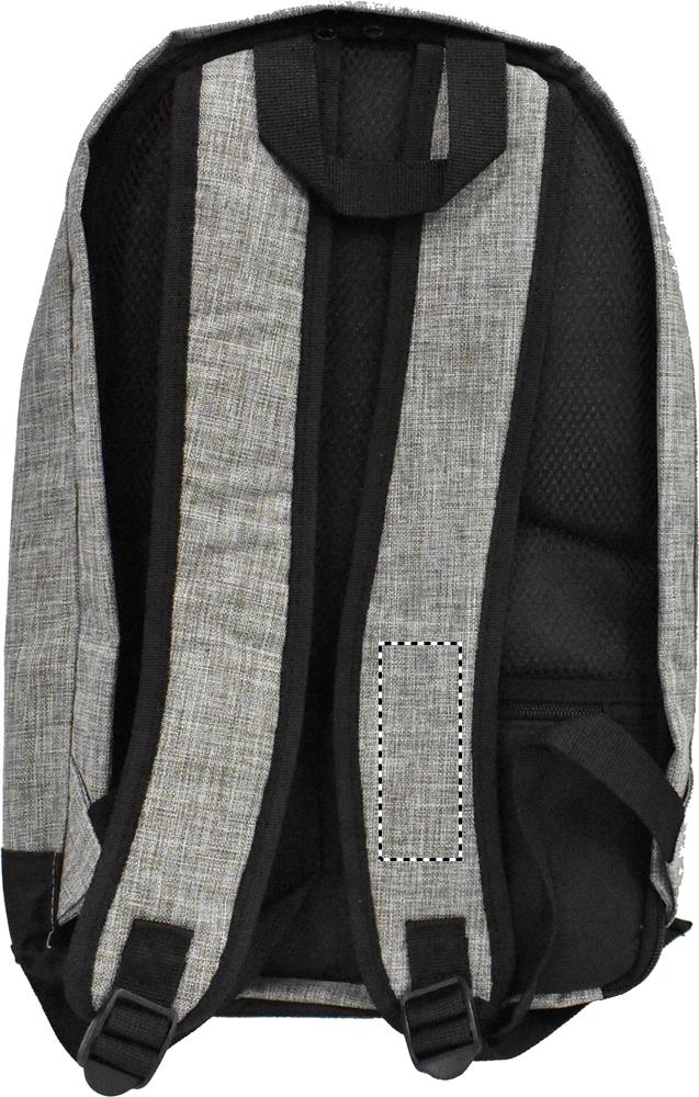 13 inch laptop backpack in 600D 2 tone polyester with outside pocket with zipper. Zipper main compartment on backside for better protection.