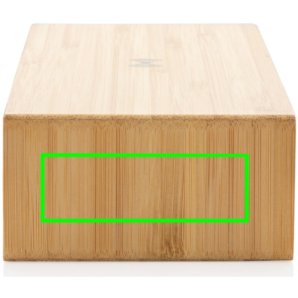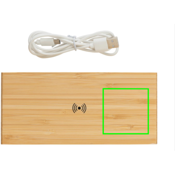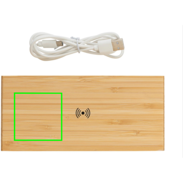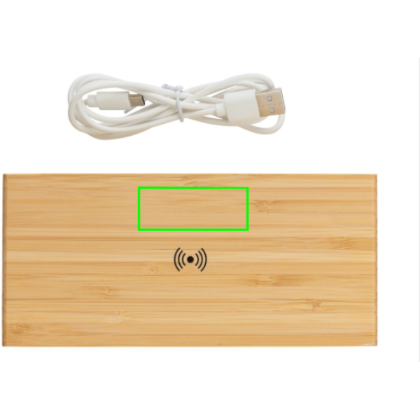 5W wireless charger alarm clock with complete bamboo exterior and 24 hour time indicator. With USB port on the backside to charge via cable. Including 150 cm PVC free TPE micro usb cable. Compatible with all QI enabled devices like Android latest generation, iPhone 8 and up Input: 5V/1.5A; Wireless Output: 5V/1A - 5W; 1 USB output port, 5V/1A.