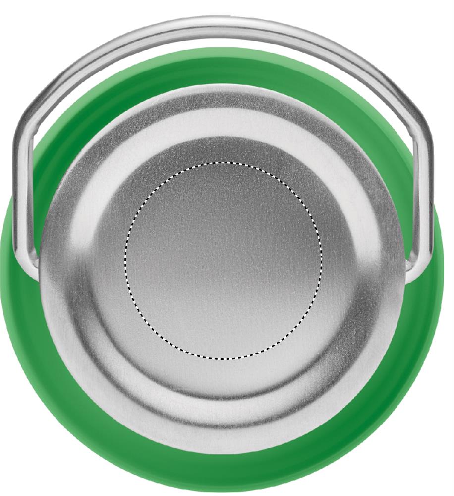 Double wall insulating vacuum bottle in recycled stainless steel (90 % recycled stainless steel and 10% stainless steel) with lid with handle. Leak-free. Capacity: 500 ml.