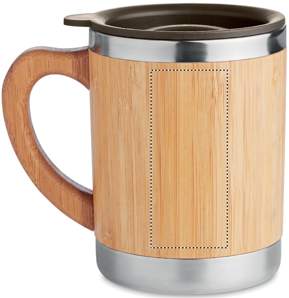 Double wall Stainless Steel mug with bamboo case and moveable drink hole. Capacity 300 ml. Bamboo is a natural product, there may be slight variations in colour and size per item, which can affect the final decoration outcome. Bamboo is a natural product, there may be slight variations in colour and size per item, which can affect the final decoration outcome.