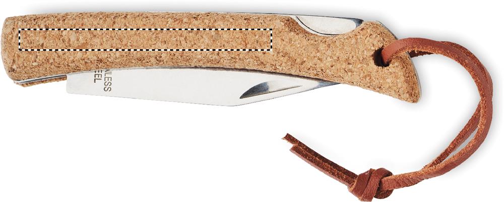 Foldable knife in stainless steel and cork covered handle with PU cord. Cork is a natural product, there may be slight variations in colour and size per item, which can affect the final decoration outcome.