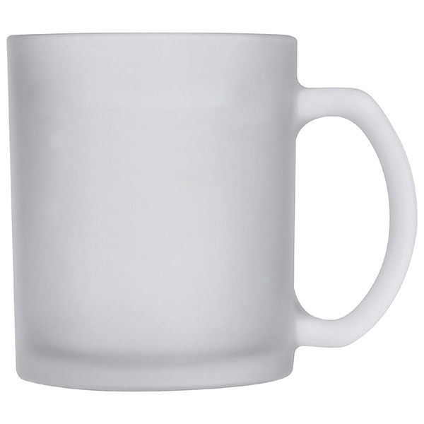 This glass coffee mug decorates any desk. Trendy transparently frosted design and its capacity of approx. 300 ml will make it become your favourite mug. We will print your logo by means of ceramic transfer left or right of the handle. We recommend hand wash only for printed mugs.