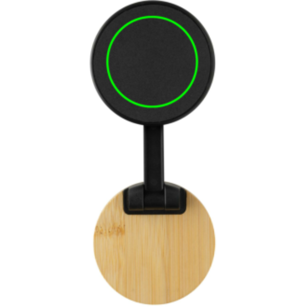 Foldable and compact magnetic phone stand with extra strong magnet. Compatible with all phones that come with an integrated magnet (iPhone 12 and higher) for Android compatible with phones that support QI2, other phones need a magnetic phone case. The stand is made with RCS (Recycled Claim Standard) certified recycled ABS and natural bamboo. Total recycled content: 30% based on total item weight. RCS certification ensures a completely certified supply chain of the recycled materials.