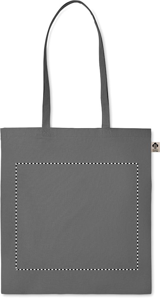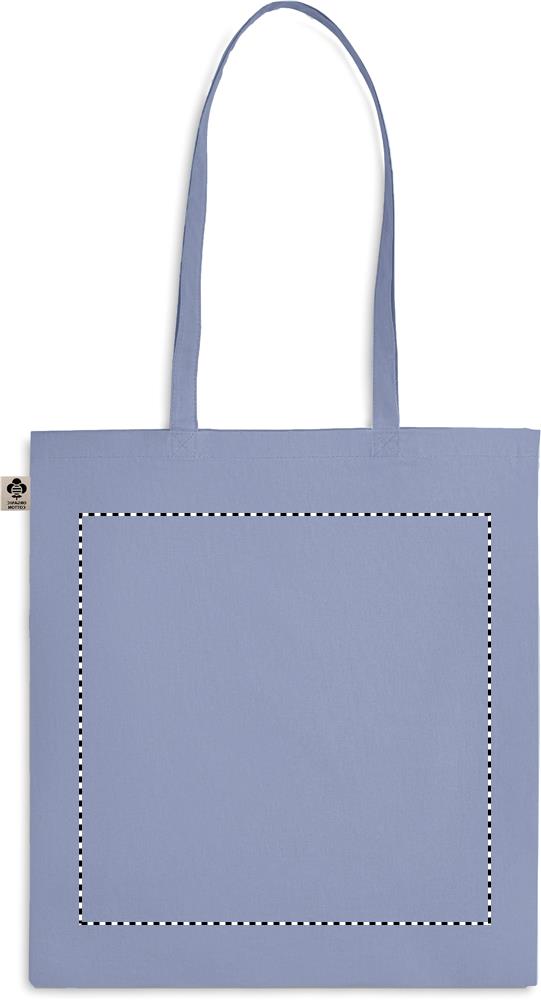 Organic cotton shopping bag with long handles. A classic tote bag design made to carry your daily groceries or other items. Carry the bag in your hands or over your shoulder with the long handles. Made from 100% natural organic cotton 140 gr/m².