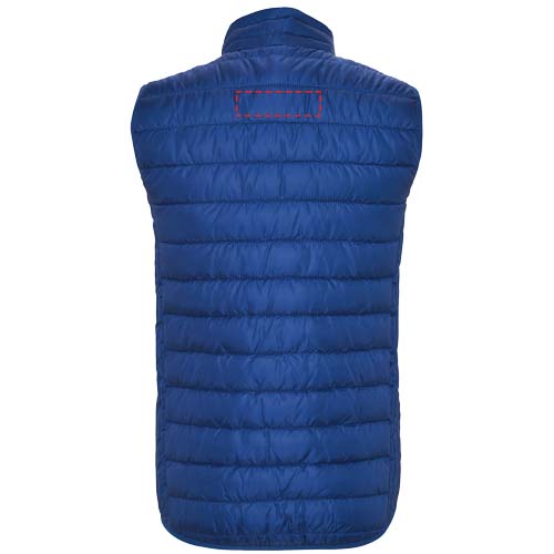 Gilet vest with feather touch filling. Inverted zips with matching chin protector and puller. Two side pockets with zip. Elastic trim in hem and armholes. Contrasting inner lining. Light and foldable garment. Water resistant. Wind-proof model.