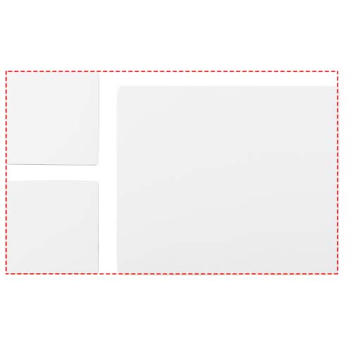 Features a Q-Mat mouse mat and a set of two matching coasters branded with your company design. The set comprises of a rectangular mousemat (0.3 x 23.5 x 20 cm) and two square coasters (0.3 x 9.8 x 9.8 cm).