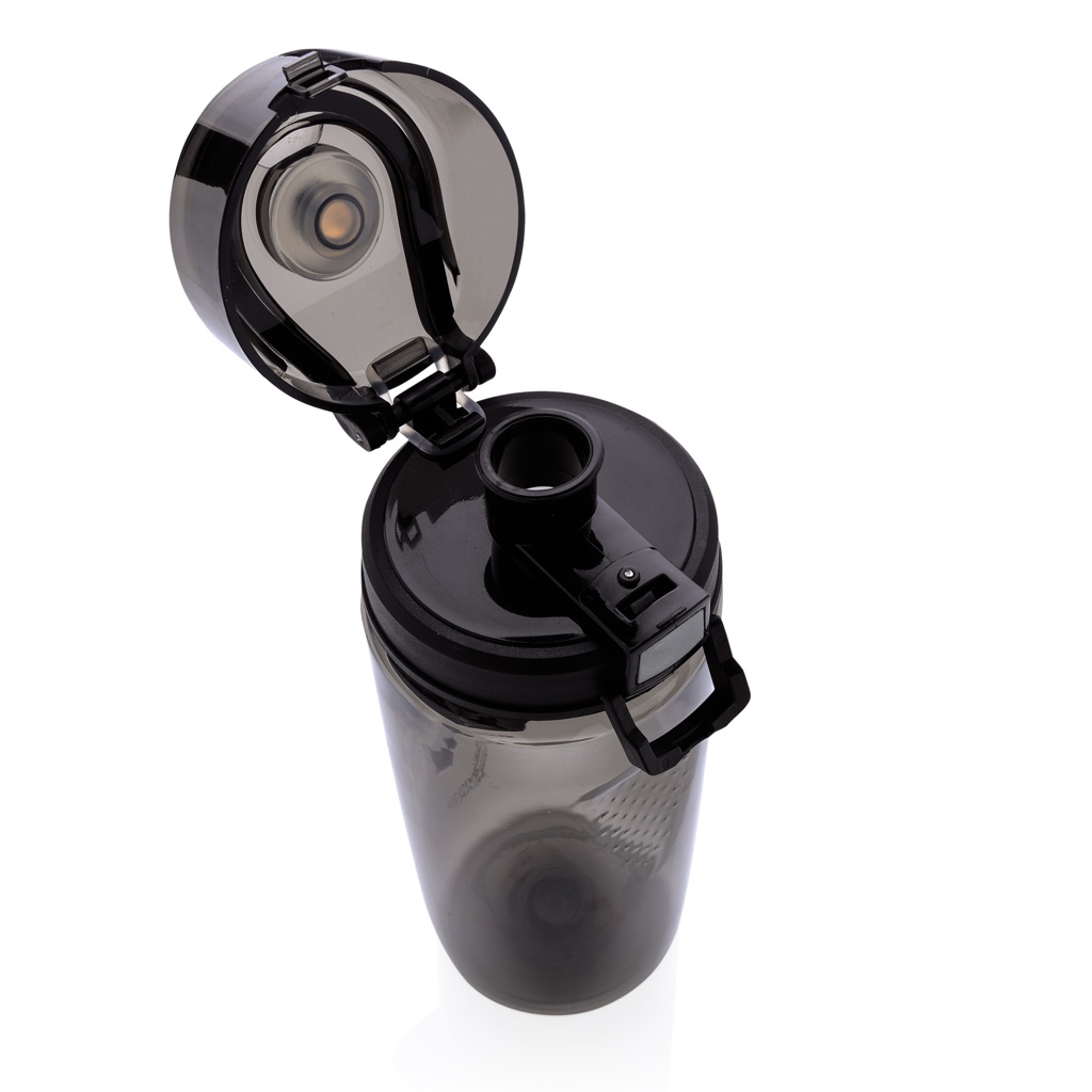 This Swiss Peak deluxe tritan sports bottle fits in your hand as easily as it fits in your sports bag. On top of that, its lockable lid has a durable design to help eliminate leaks and spills. With a no-slip grip design and button-7operated spout. Integrated handle in the lid for easy carrying. Capacity 700ml. BPA free.