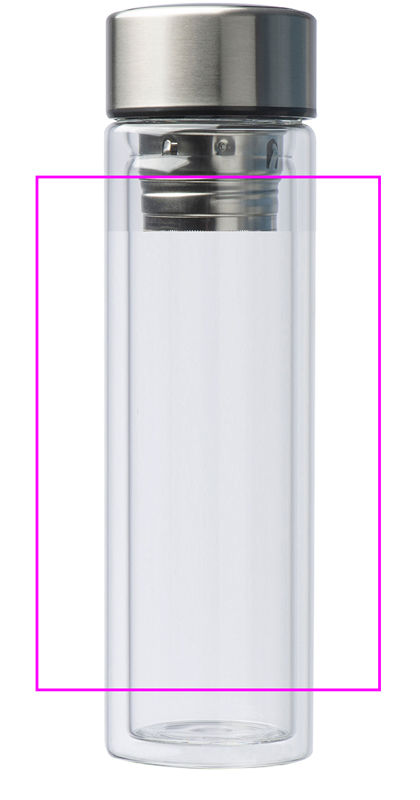 Thermal flask made of borosilicate glass with a digital temperature display in the lid, sieve and a capacity of 400 ml. Your logo will be printed onto the glass.