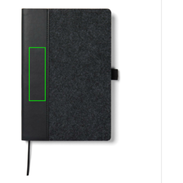 A5 notebook elegantly crafted from recycled felt, boasting a mélange effect and an integrated pen holder. Containing 80 sheets or 160 pages of 70 gsm recycled paper, its lined pages are ideal for any note-taking needs. Certified by GRS (Global Recycled Standard), GRS certification guarantees that the entire supply chain of the recycled materials is certified. The total recycled content is based on the overall product weight. This product contains 83% GRS-certified recycled paper and 7% GRS-certified recycled felt.