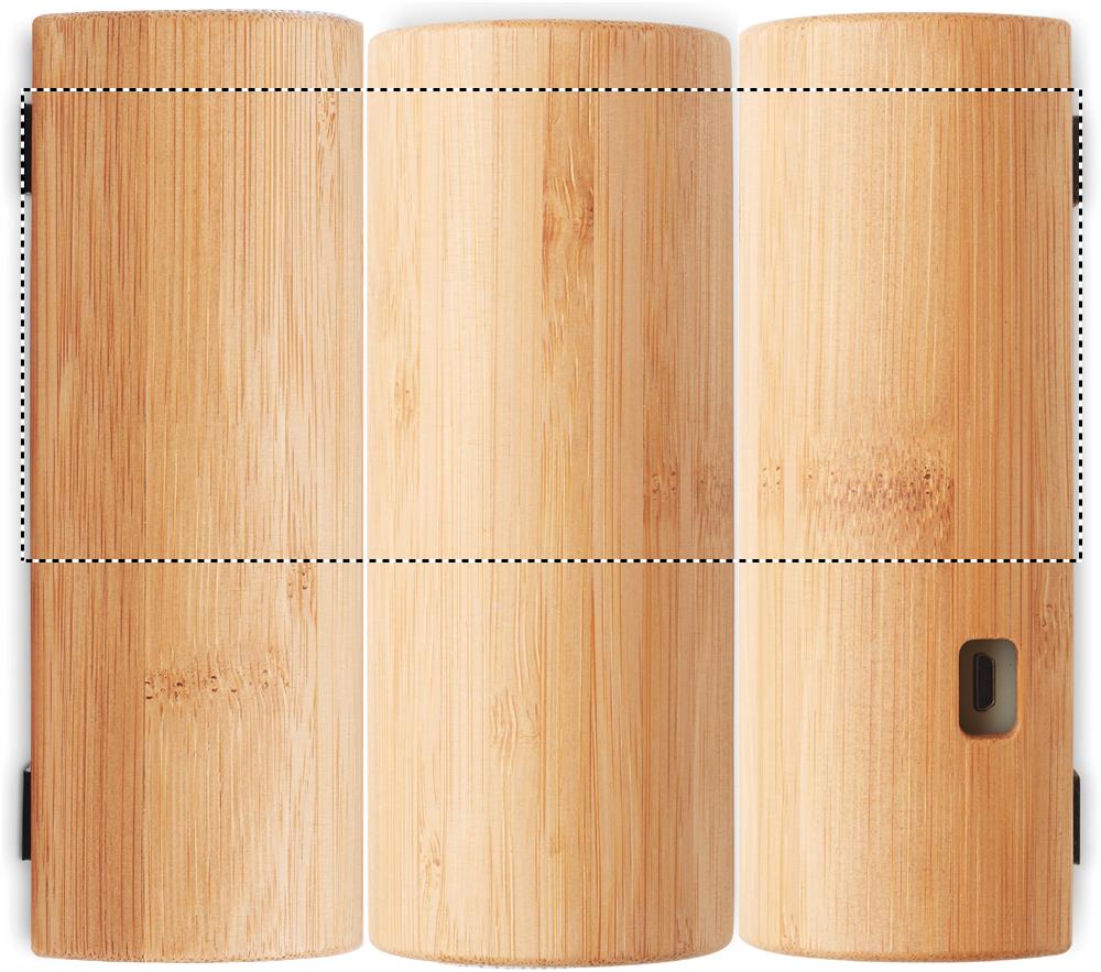 5.0 wireless stereo speaker in ABS with bamboo casing. Rechargeable Li-ion 2000 mAh battery included. Output data: 4 Ohm, 5Wx2. Playing time aprox. 4 hrs, charging time 3 hrs. Bamboo is a natural product, there may be slight variations in colour and size per item, which can affect the final decoration outcome.