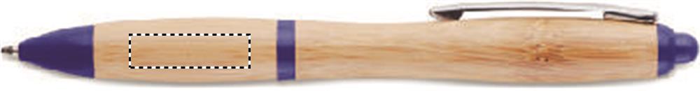 Vajutusnupp pastapliiats bambusest silindri ja ABS-kinnitusega. Sinine tint. Bambus on looduslik toode, ühe eseme värvis ja suuruses võib esineda väikesi erinevusi, mis võivad mõjutada lõppviimistlust.