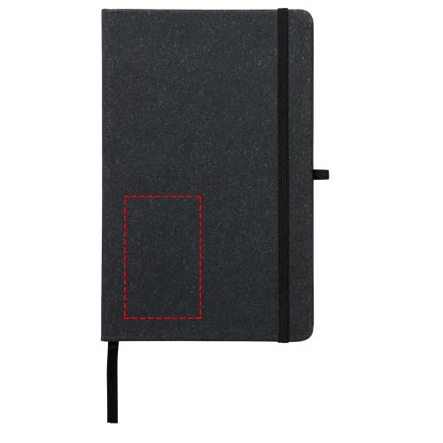 A5 suuruses teatmemärkmik kaanega, mis on valmistatud nahajääkidest. Sisaldab elastset riba, pliiatsi aasat, lindimarkerit ja 80 lehte, 80 g/m² joonelist paberit.
