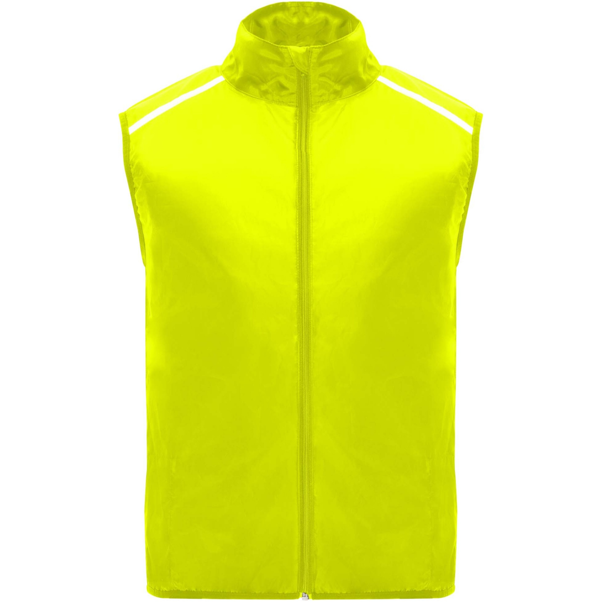 Tuulekindel ja hingav. Ees tõmblukk koos sobiva lõuakaitsega. Elastne side käeaugus ja allosas. Seljaosa alumine osa mikroperforeeritud kangast. Hästi nähtavad detailid peal, ees ja taga. Elastse rihmaga tasku vesti hoidmiseks ja randmel kandmiseks. Eemaldatav etikett.