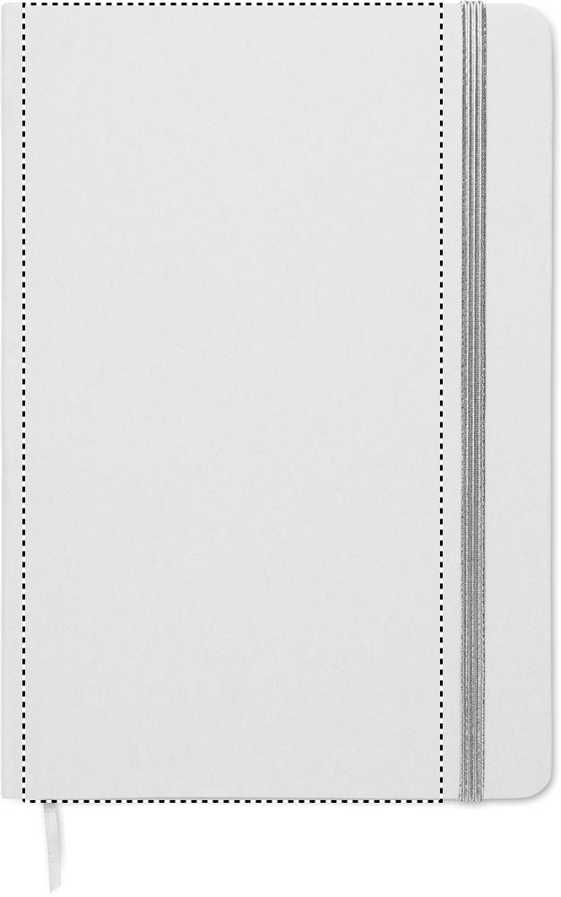 A5 märkmik kõva taaskasutatud pappkaanega. Valgete kaantega, 160 joonega taaskasutatud paberilehte (80 lehte). Elastne sulgemisrihm, järjehoidja pael. Pärast lasergraveerimist selgub värv.