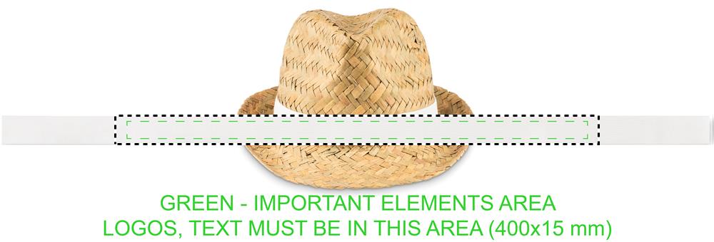 Naturaalsest õlgkübar polüesterpaelaga. Trükkimata tellimuste puhul tarnitakse riba kauba külge kinnitamata.