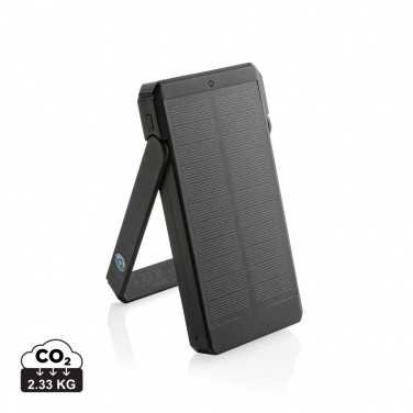 10 000 mAh päikesepatarei, mis on valmistatud RCS-sertifikaadiga taaskasutatud ABS-ist. Taaskasutatud kogusisaldus: 18% eseme kogukaalust. RCS-sertifikaat tagab taaskasutatud materjalide täielikult sertifitseeritud tarneahela. Powerbank kasutab kvaliteetseid monokristallilisi päikesepaneele, mille konversioonimäär on 19%. Tasu määr sõltub tingimustest. Integreeritud statiivifunktsiooniga päikesepaneelide kasutamiseks optimaalse nurga all. Akupank sisaldab kauakestvat A-klassi 10 000 mAh liitiumakut. Laadimiskiirus päikeseenergia: 5V/200mA. Sisendtüüp C: 5V/2A. Väljund: USB A: 5V/2A Tüüp C: 5V/2A. Toode ja tarvikud PVC-vaba. Kaasa arvatud RCS-sertifikaadiga taaskasutatud TPE laadimiskaabel. Pakitud FSC® segupakendisse. Registreeritud disain®