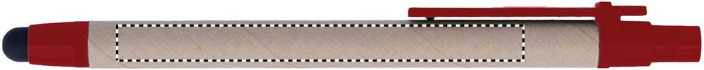 Taaskasutatud kartongist silindri ja ABS-otsa ning klambriga valmistatud kuulpliiats. Sinine tint, täidis ja pehme puutetundlik ots.