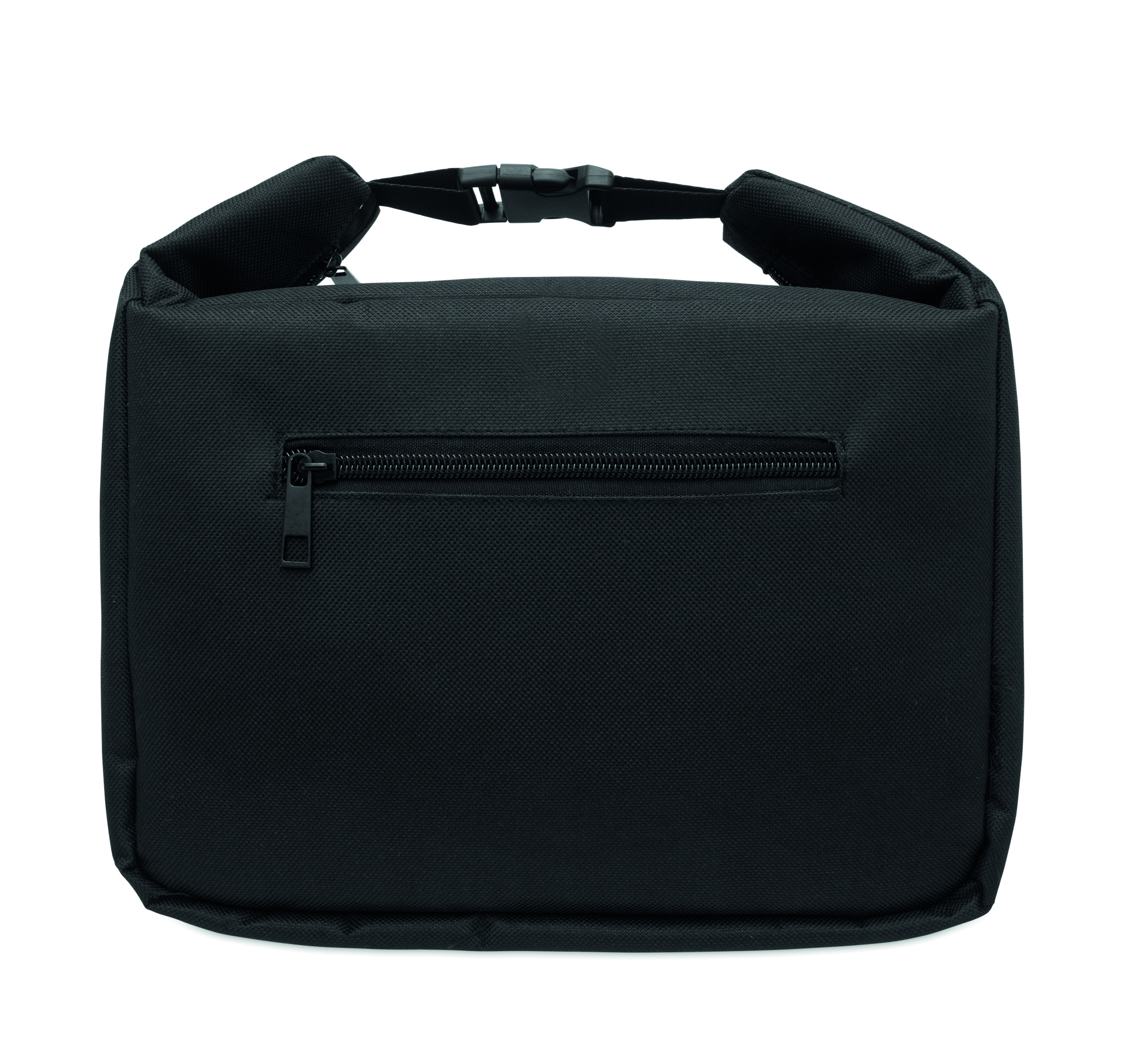 Külmakott sisemise temperatuurinäidikuga, valmistatud 600D RPET materjalist, 3 mm PE-vahust ja alumiiniumfooliumist sisemusega. Klambriga suletav. Küljel lukuga tasku. Mahutavus: 10 l.