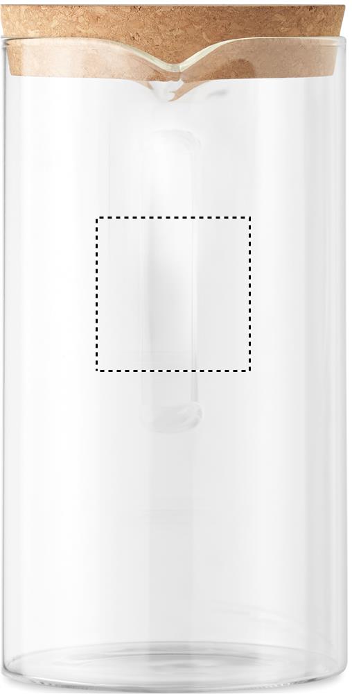 Litran borosilikaattilasi kannu, korkista valmistetulla korkilla. Borosilikaattilasiin ei voi kaiverruttaa.