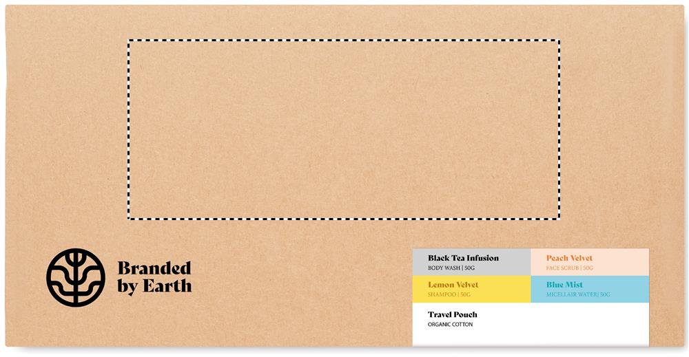 Brandet by earth hoitosetti, sisältää vegaanisen 50gr vartalonpesuaineen, shampoon, kasvojen kuorinnan, kasvoveden ja orgaanisen puuvilla matkapussin. Pakattuna pahviseen laatikkoon, valmistusmaa EU.