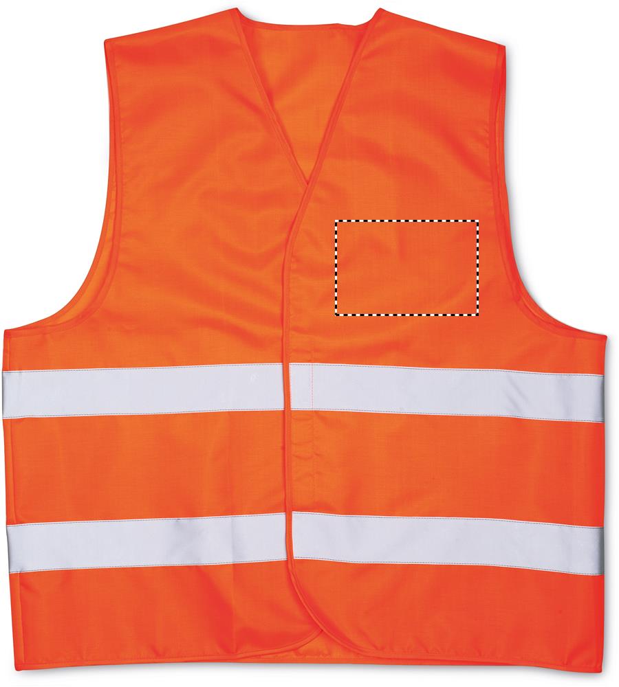 100 % neulotusta polyesteristä valmistettu huomioliivi, jossa on Class2-luokan hyvin näkyvä heijastinnauha. EN ISO 20471.