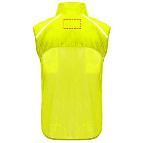 Tuulenpitävä ja hengittävä. Edessä vetoketju yhteensopivalla leukasuojalla. Joustava ommel käsiaukoissa ja alareunassa. Selän alaosa mikrorei'itettyä kangasta. Heijastekuvioita yläosassa, etupuolella ja takana. Tasku kuminauhalla liivin säilyttämistä ja ranteessa kantamista varten. Irrotettava etiketti.