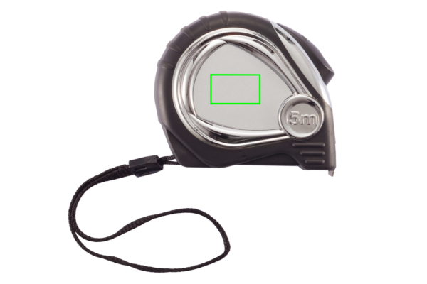 5 m/19 mm kromipinnoitettu ABS-kotelo pehmeällä kumikahvalla ja keltaisella mattanauhalla. Sisältää vyöklipsun ja rannehihnan.