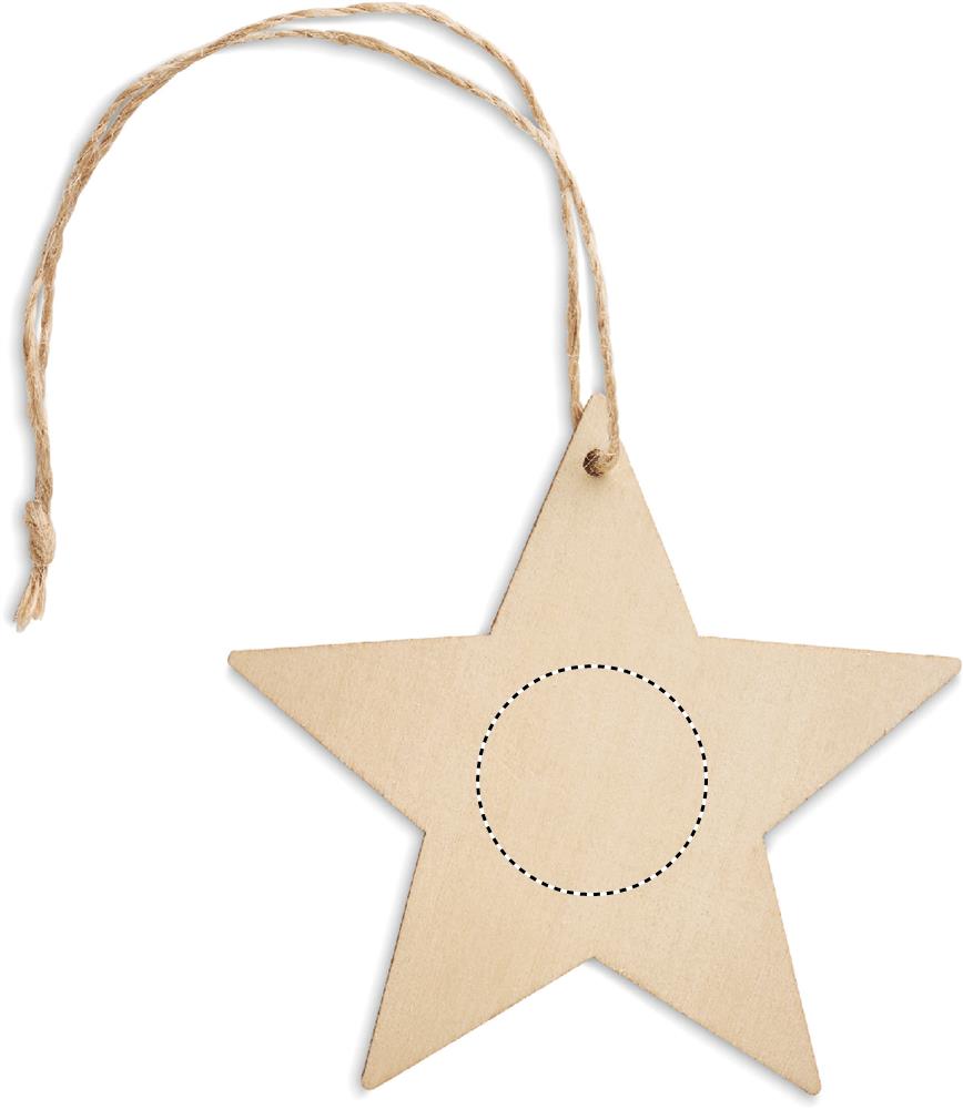 Puinen MDF tähden muotoinen kuusenkoriste juuttilankaripustimella. Luonnollisen materiaalin (MDF) vuoksi, tuotteiden värissä/ koossa saattaa olla erinäisyyksiä ja tämä voi vaikuttaa painatuksen lopputulokseen.