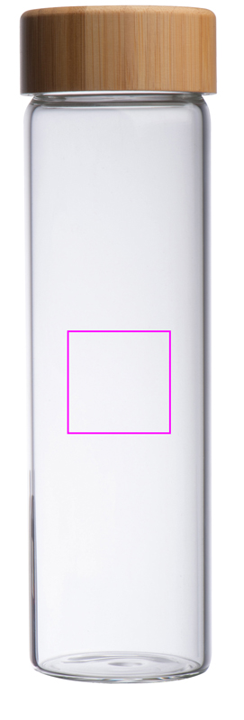 Lasipullo bambukannella ja täyttökapasiteetti 500 ml. Logosi kaiverretaan kanteen.