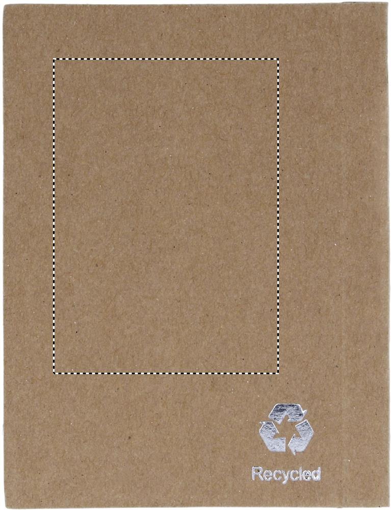 Pienikokoinen 80 sivuinen kierrätysmateriaalista valmistettu muistilehtiö, sisältää kuulakärkikynän sinisellä musteella.
