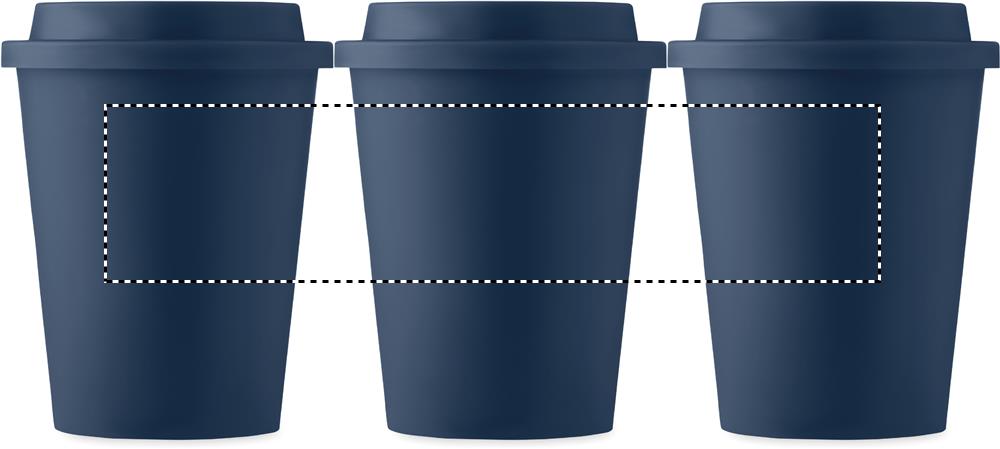 Kaksiseinäinen 300 ml muki PP kannella. Yksinkertainen tumbler-muki, joka pitää juomasi lämpimänä pitkään. Kannessa on juoma-aukko.