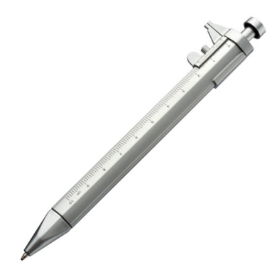 Muovinen kuulakärkikynä viivaimella ja jarrusatulalla. Painamme logosi vaakaa vastapäätä.
