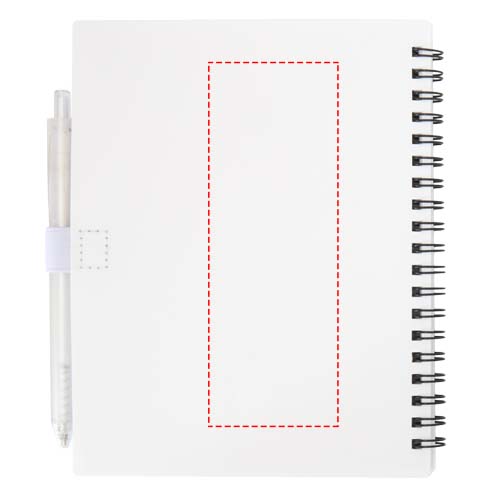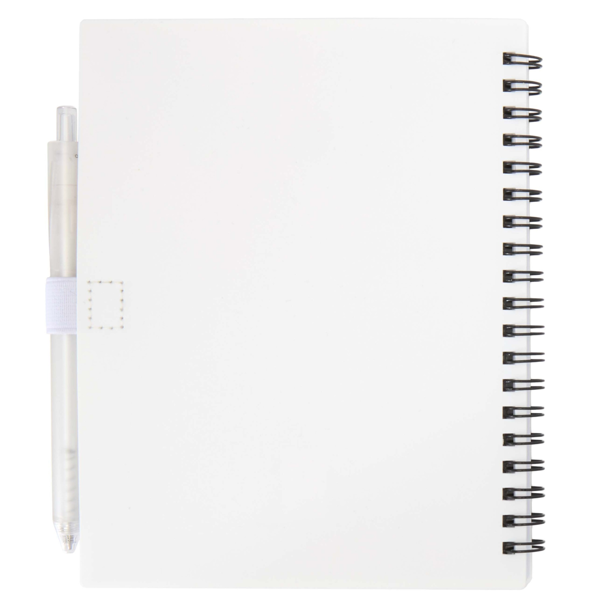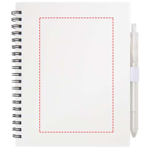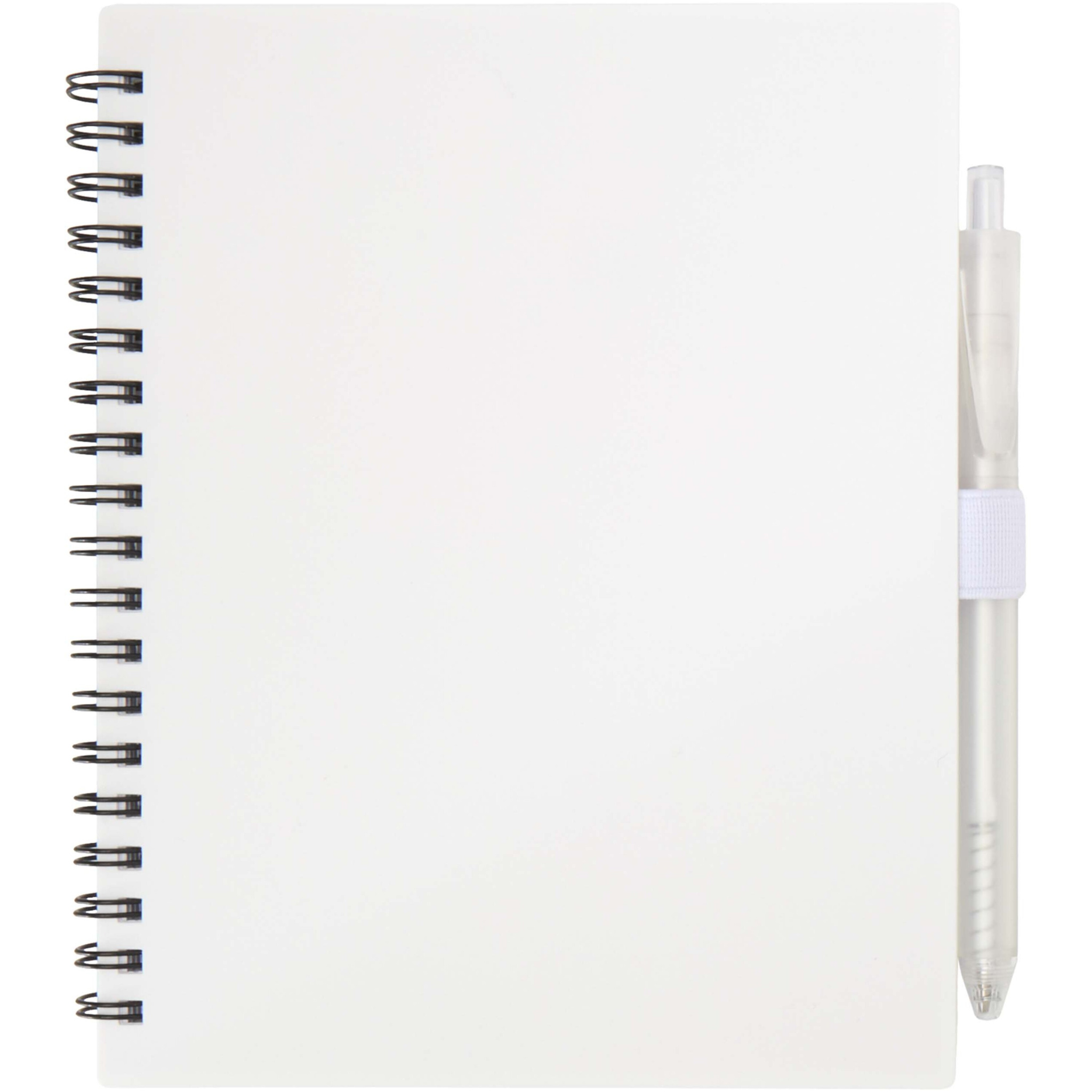 Niove kierrätetystä muovista valmistettu pehmeäkantinen muistikirja ja kuulakärkikynäsetti (sininen muste), Valkoinen