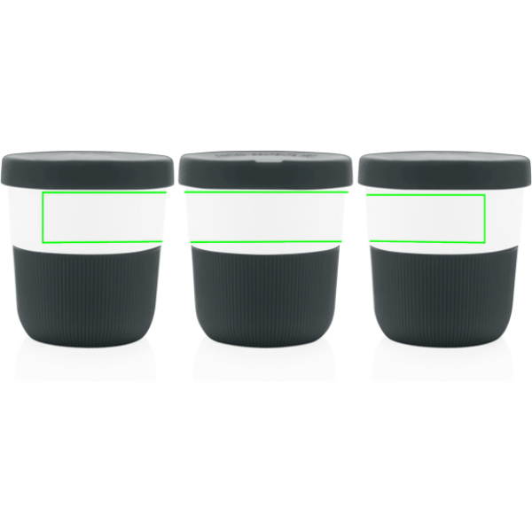 Ympäristöä säästävä vaihtoehto perinteisille mukeille! Tyyliä ja käytännöllisyyttä aamuisille työmatkoillesi – tässä PLA-kahvimukissa kannat kuuman juoman helposti mukanasi. Valmistettu kasvimateriaalista (PLA), joten tyylikkyyden lisäksi muki on ystävällinen planeetallemme. Kätevä ja mukava silikonikahva ja kansi. Sopii käytettäväksi useimmissa kahviautomaateissa. 100-prosenttisesti melamiiniton. Tilavuus 280ml.