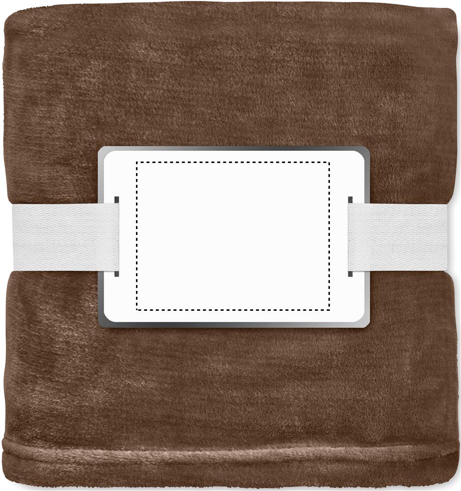 RPET flanellifleecehuopa 280 gr/m². Huovan ympärillä nauha jossa on painettava kortti.