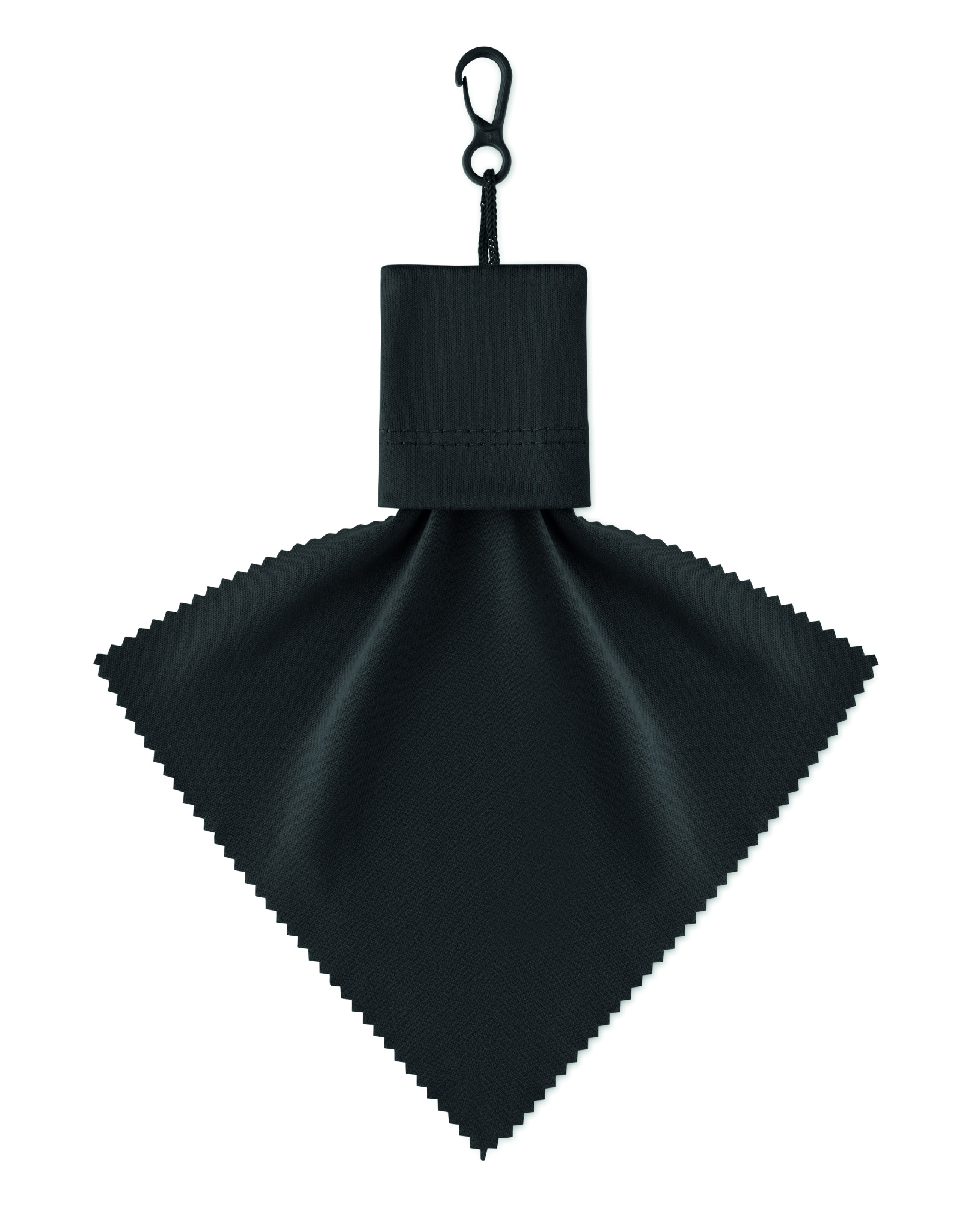 Puhdistusliina RPET-materiaalista omassa pussissaan, jossa PP-muovinen ripustuskoukku
