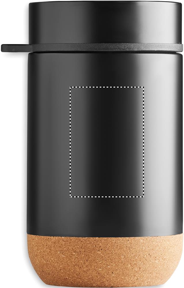 Kaksiseinäinen ruostumattomasta teräksestä valmistettu säilytyspurkki, jossa on kierrekansi ja korkkipohja. Sisältää lusikan. Tilavuus 400 ml.